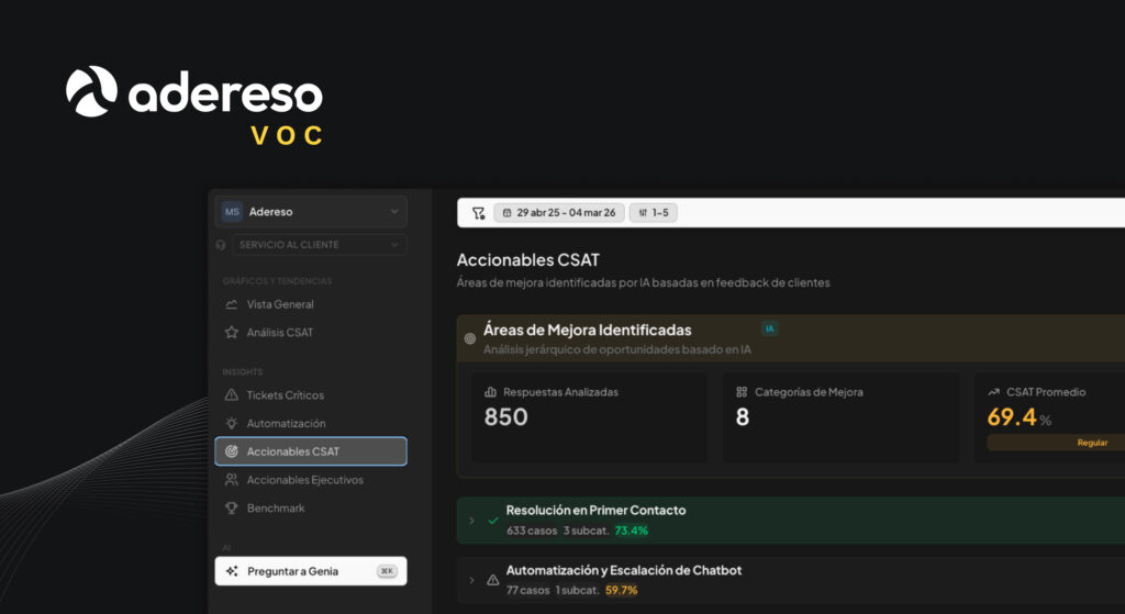 ¿Tu CSAT bajó? VoC te dice qué categorías lo están causando, con qué frecuencia y en qué casos. Sin revisar encuestas una por una.